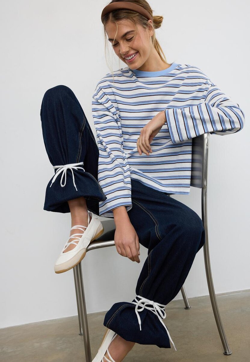Oversize langermet stripete T-skjorte hos Stradivarius for kun 29,9 $ Tilgjengelig i en begrenset periode. Mix and Match for kvinner – alltid på moten, kom inn og sjekk ut nå!