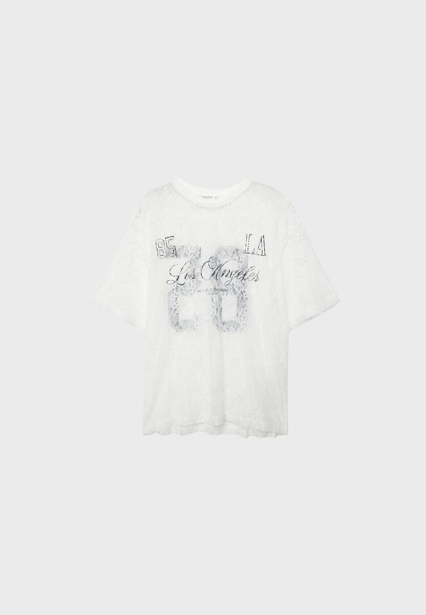 Oversize T-skjorte i blonder med grafisk detalj hos Stradivarius for kun 35,9 $ Tilgjengelig i en begrenset periode. Null for kvinner Alltid på moten, kom inn og sjekk det ut nå!