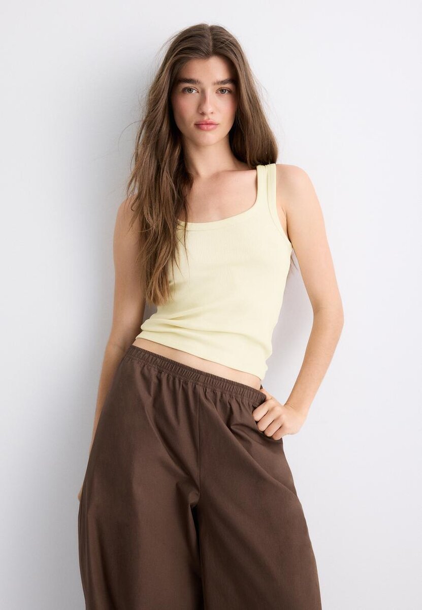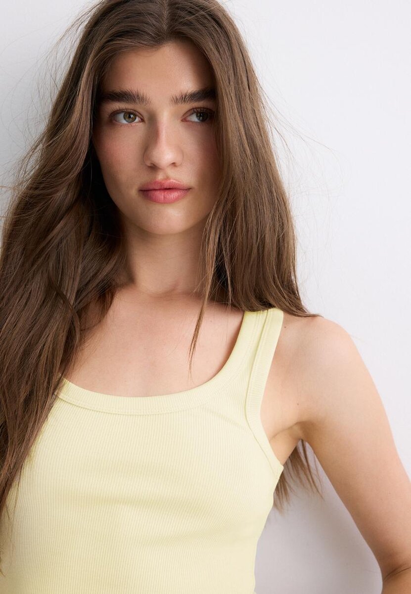 Ribbet T-skjorte med racerrygg hos Stradivarius for kun 14,9 $ Tilgjengelig i en begrenset periode. Mix to Win for kvinner Alltid på moten, kom inn og sjekk det ut nå!