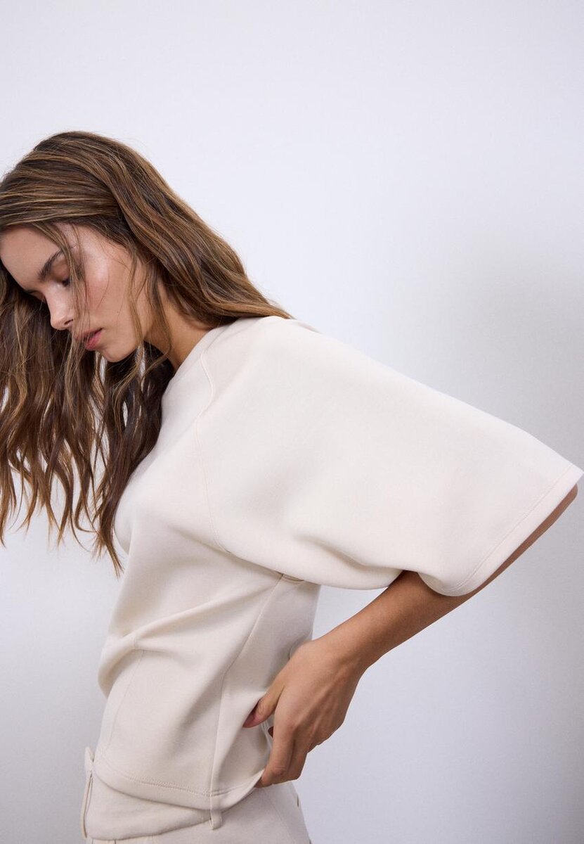 T-skjorte laget av Soft-Touch-stoff med rund hals og korte ermer. Med innsnitt i midjen. Tilgjengelig i flere farger.