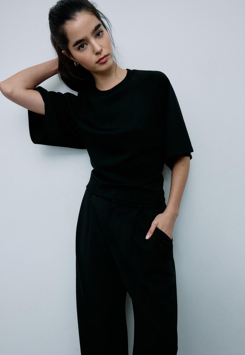 T-skjorte laget av Soft-Touch-stoff med rund hals og korte ermer. Med innsnitt i midjen. Tilgjengelig i flere farger.
