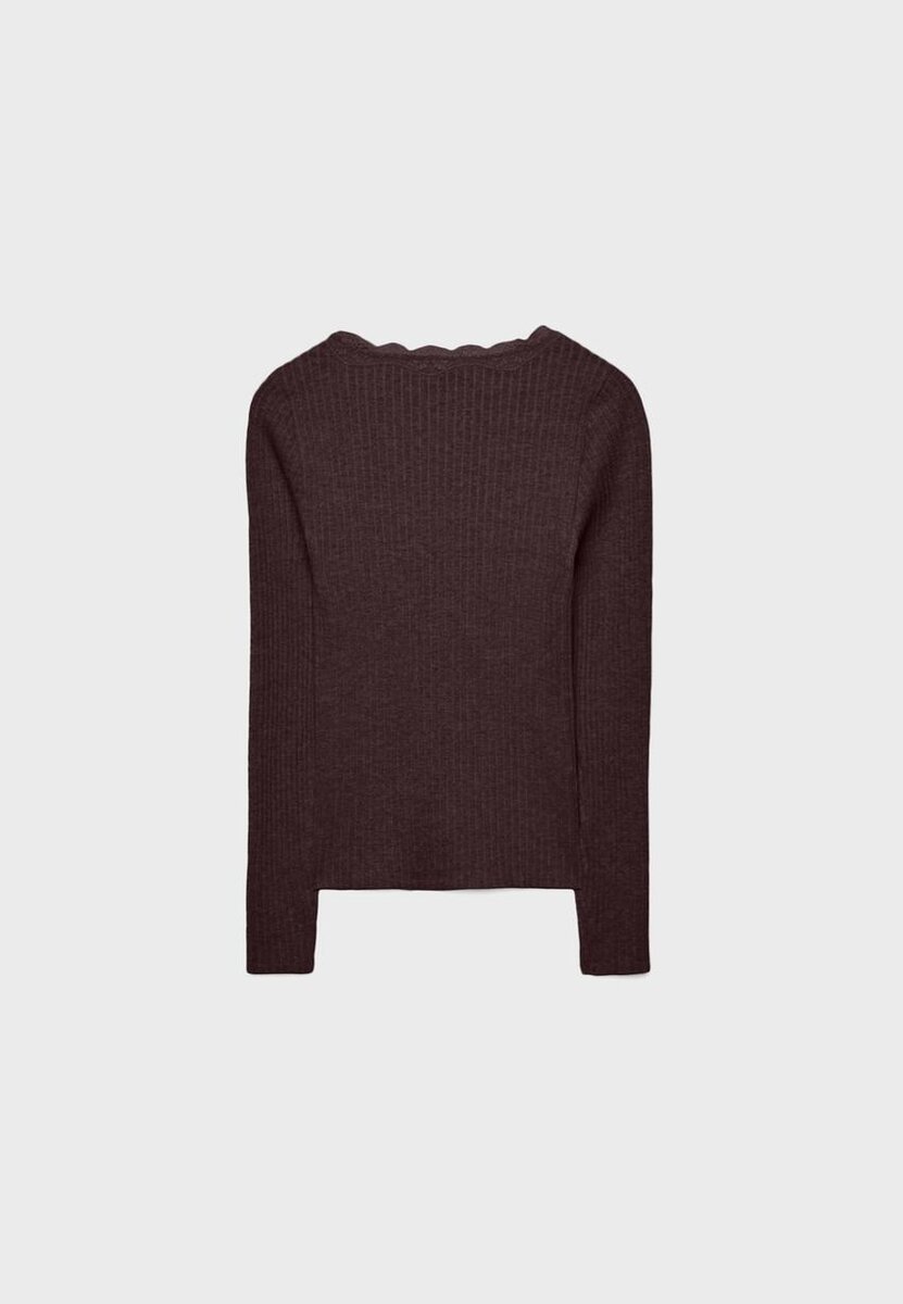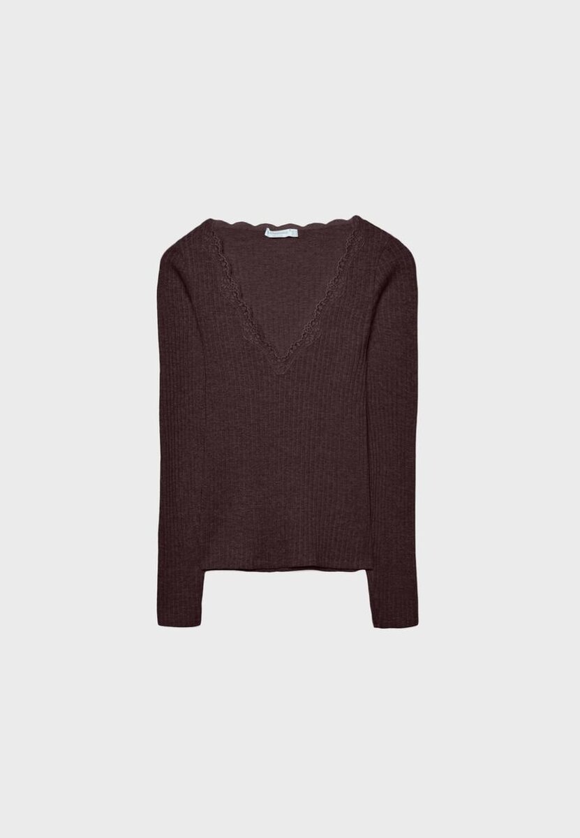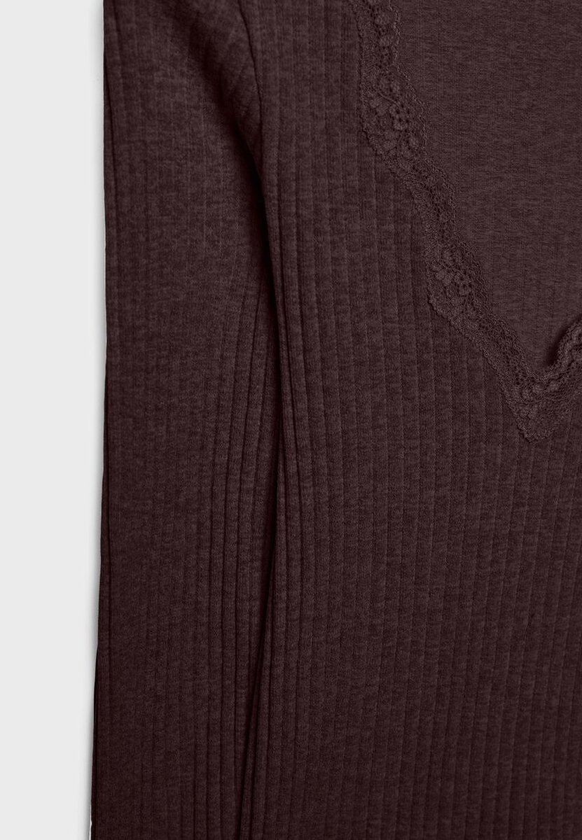 Tettsittende, seamless T-skjorte med V-hals, matchende blonder og lange ermer. Tilgjengelig i flere farger.