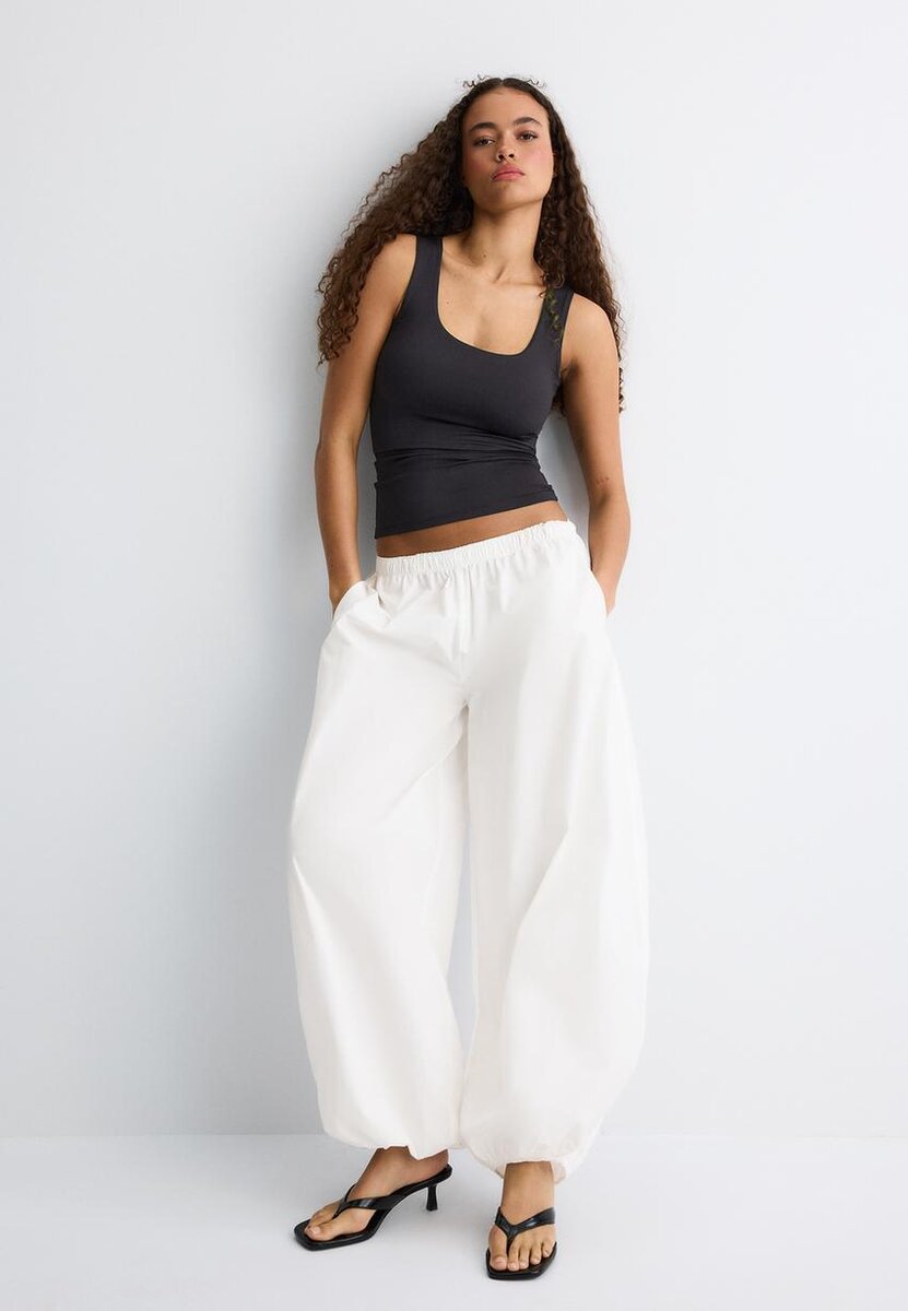 Tettsittende T-skjorte med racerrygg. Brede stropper og rund hals. Tilgjengelig i flere farger.