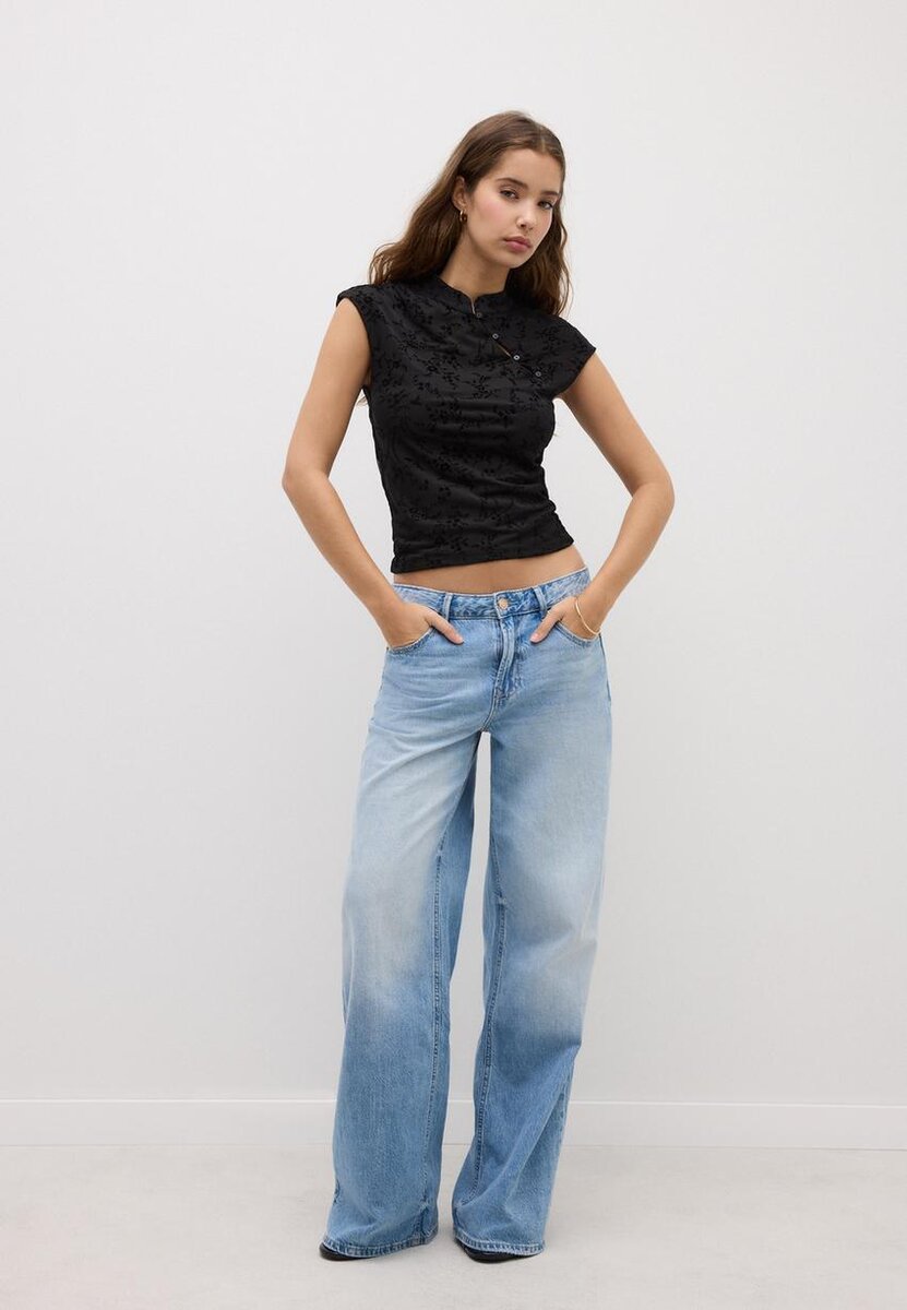 Flocket T-skjorte i Qipao-stil