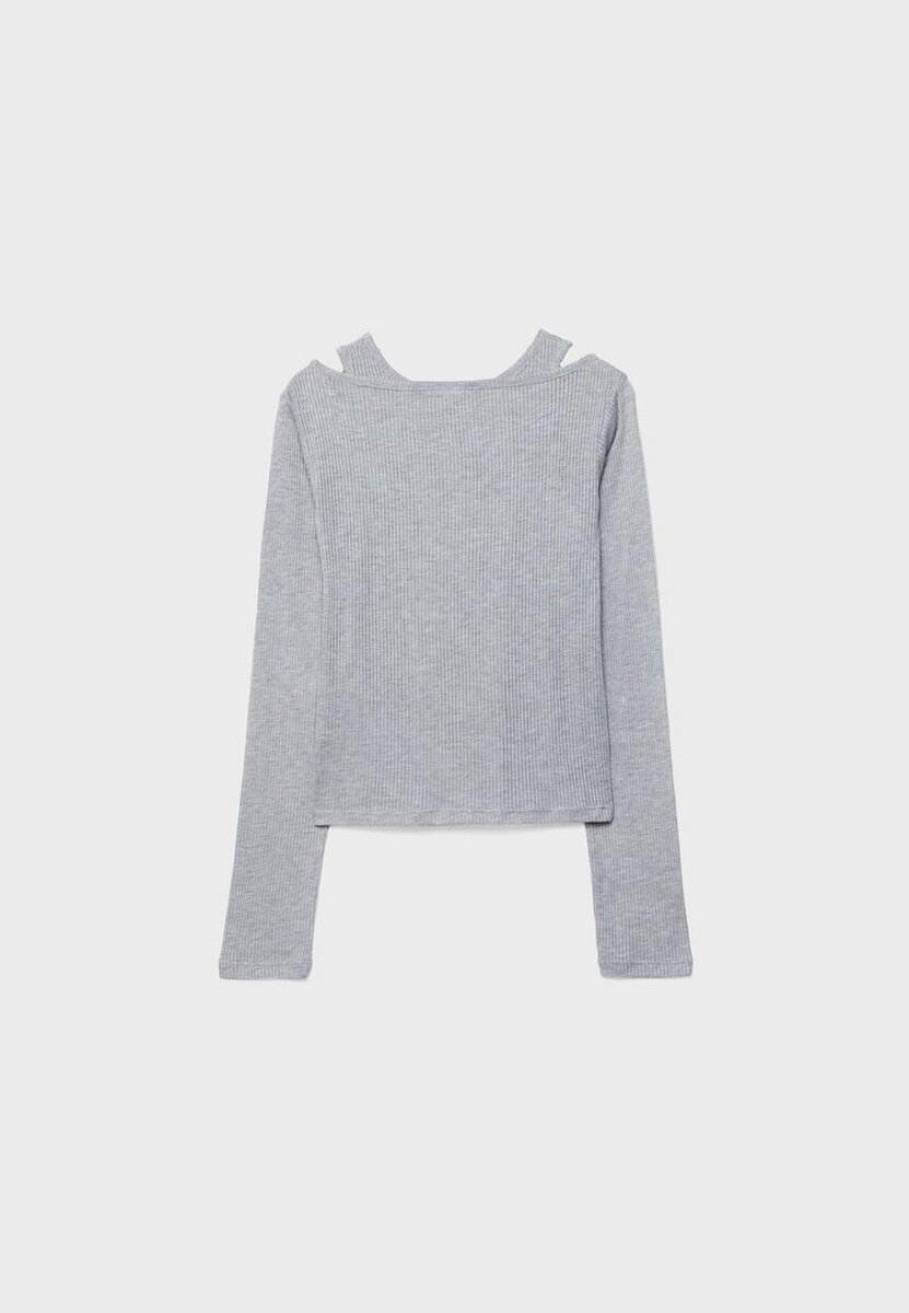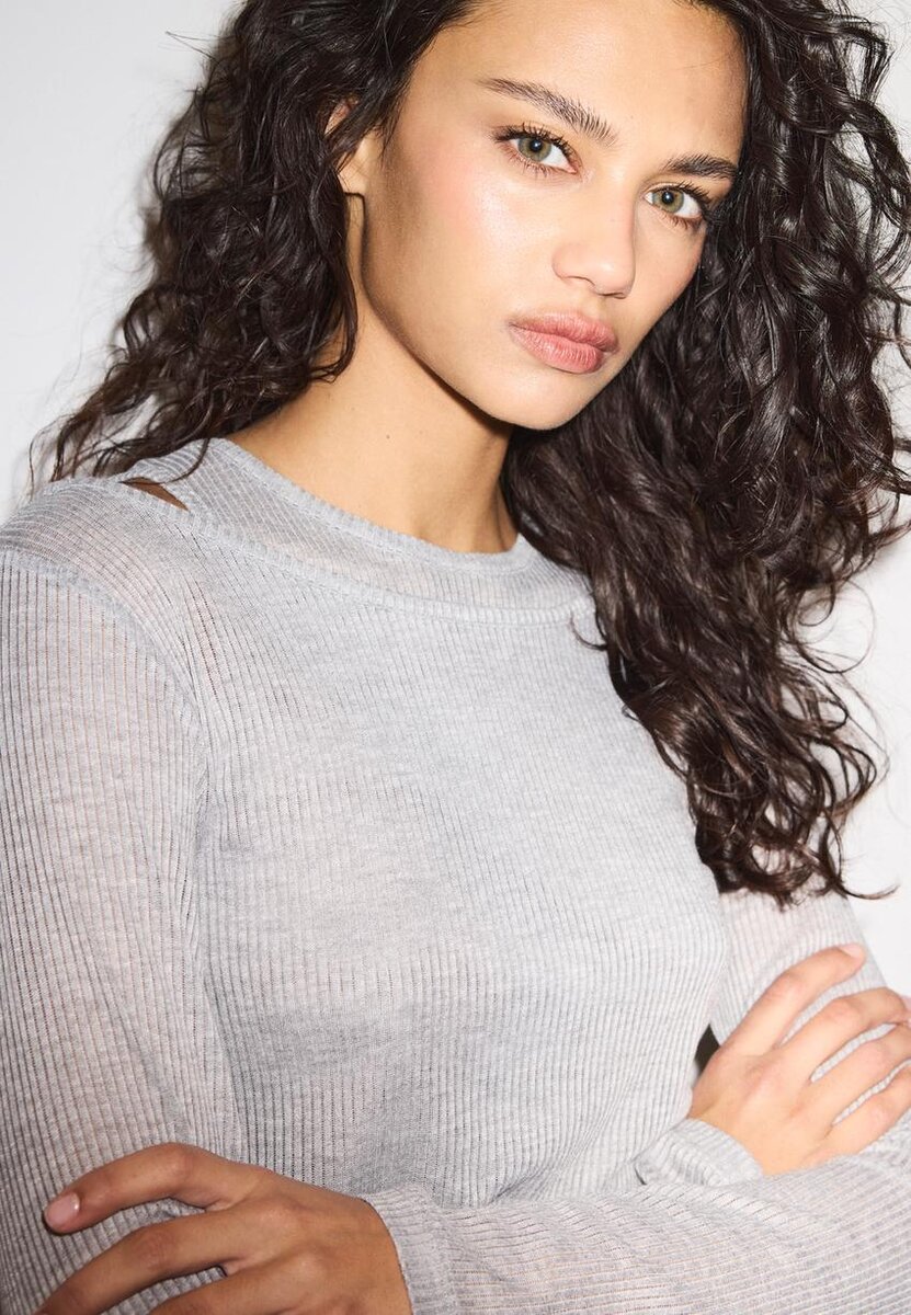 T-skjorte med rund hals og lange ermer. Med et tonalt overtrekk i to lag. Tilgjengelig i ulike farger.