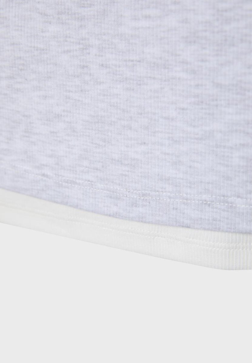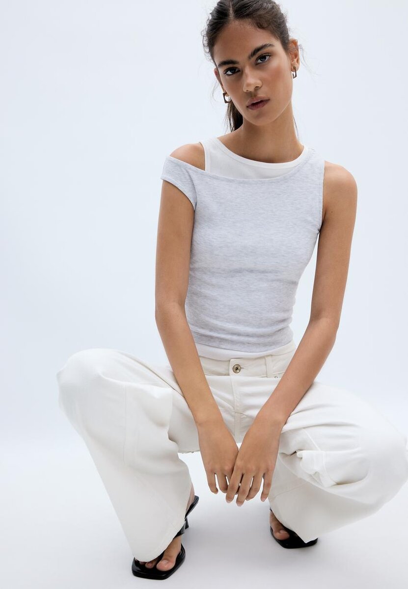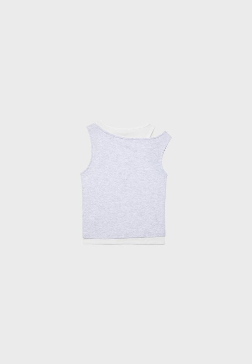 T-skjorte med rund hals og stropper. Med kontrasterende detalj i form av en dobbel T-skjorte. Tilgjengelig i en rekke farger.