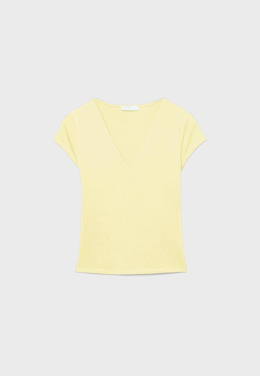 Tettsittende T-skjorte. V-hals og korte ermer. Tilgjengelig i flere farger.