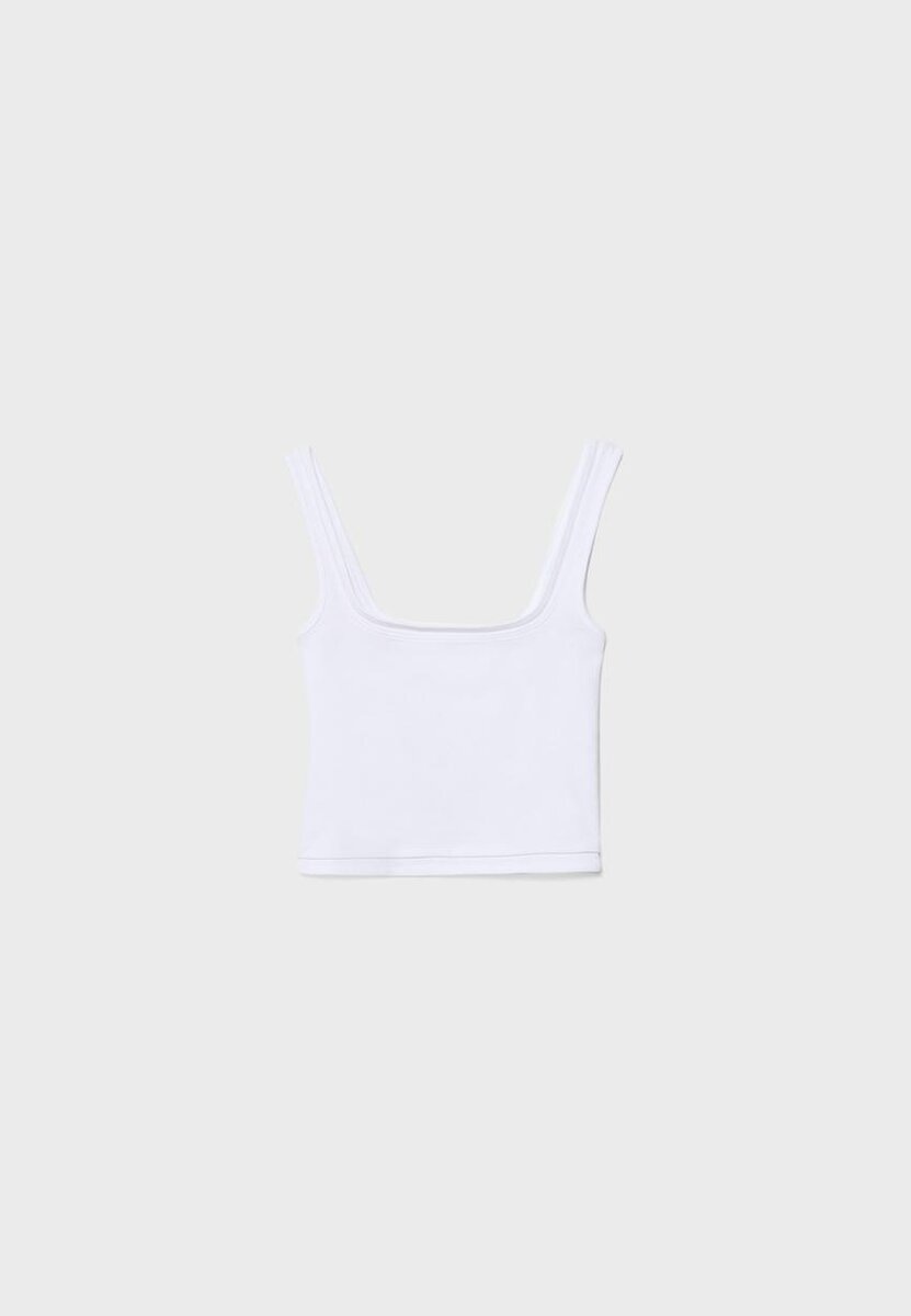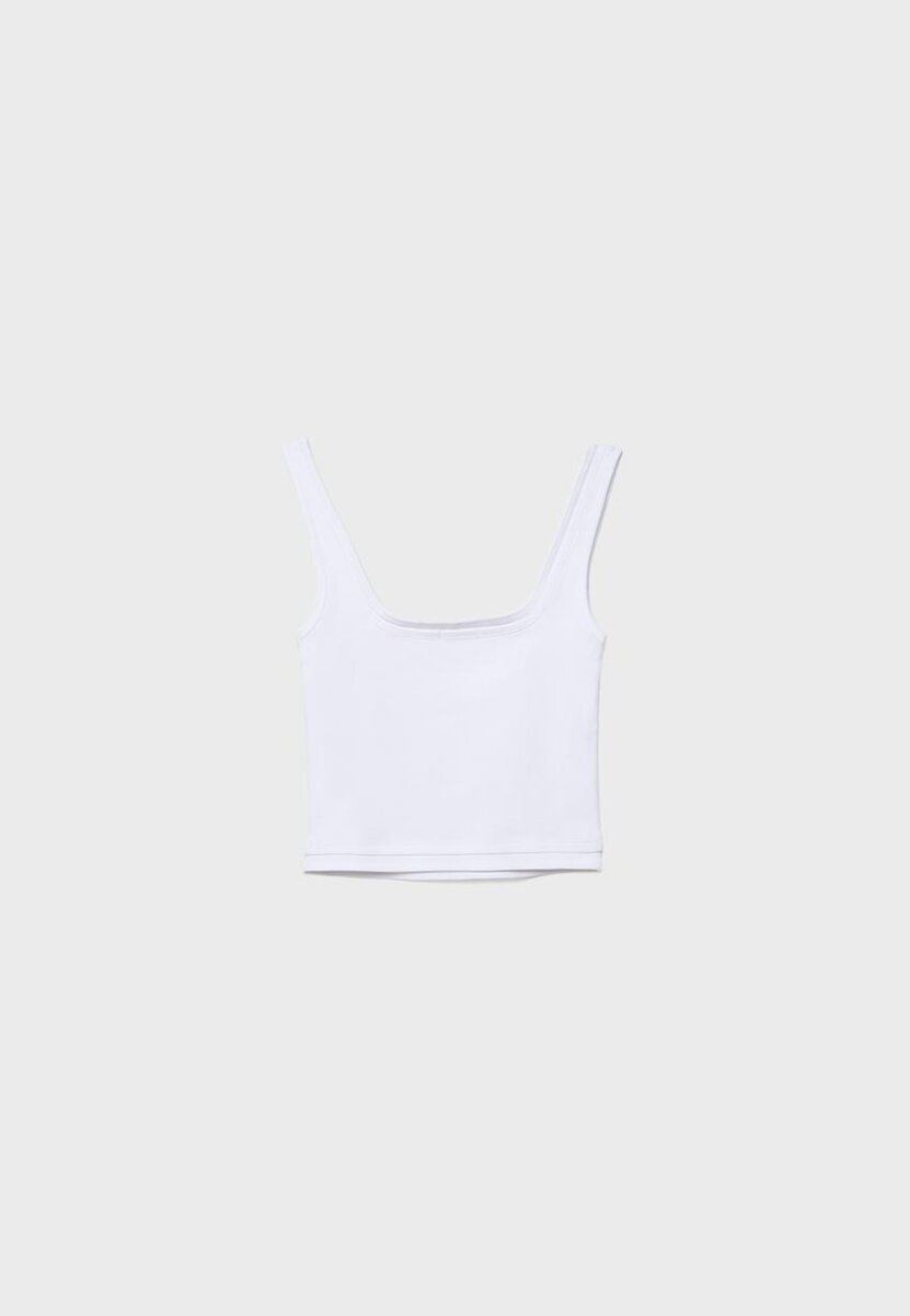 Top med firkantet hals og to-delt effekt