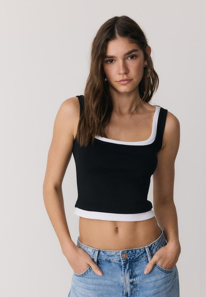 Top med firkantet hals og to-delt effekt fra Stradivarius for kun 17,9 $ Tilgjengelig i en begrenset periode. Null for kvinner Alltid på moten, kom inn og sjekk ut nå!