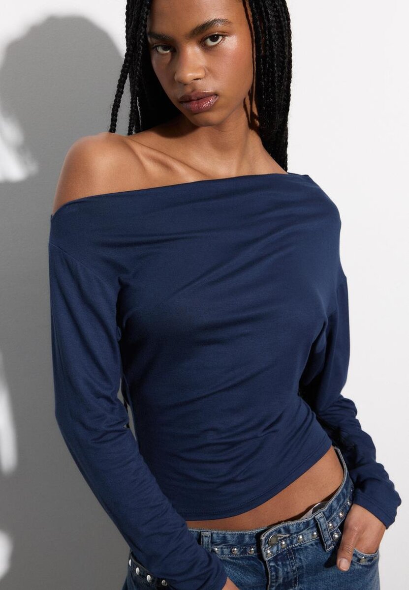 Top med asymmetrisk halsutringning hos Stradivarius for kun 25,9 $ Tilgjengelig i en begrenset periode. Null for kvinner Alltid på moten, kom inn og sjekk ut nå!