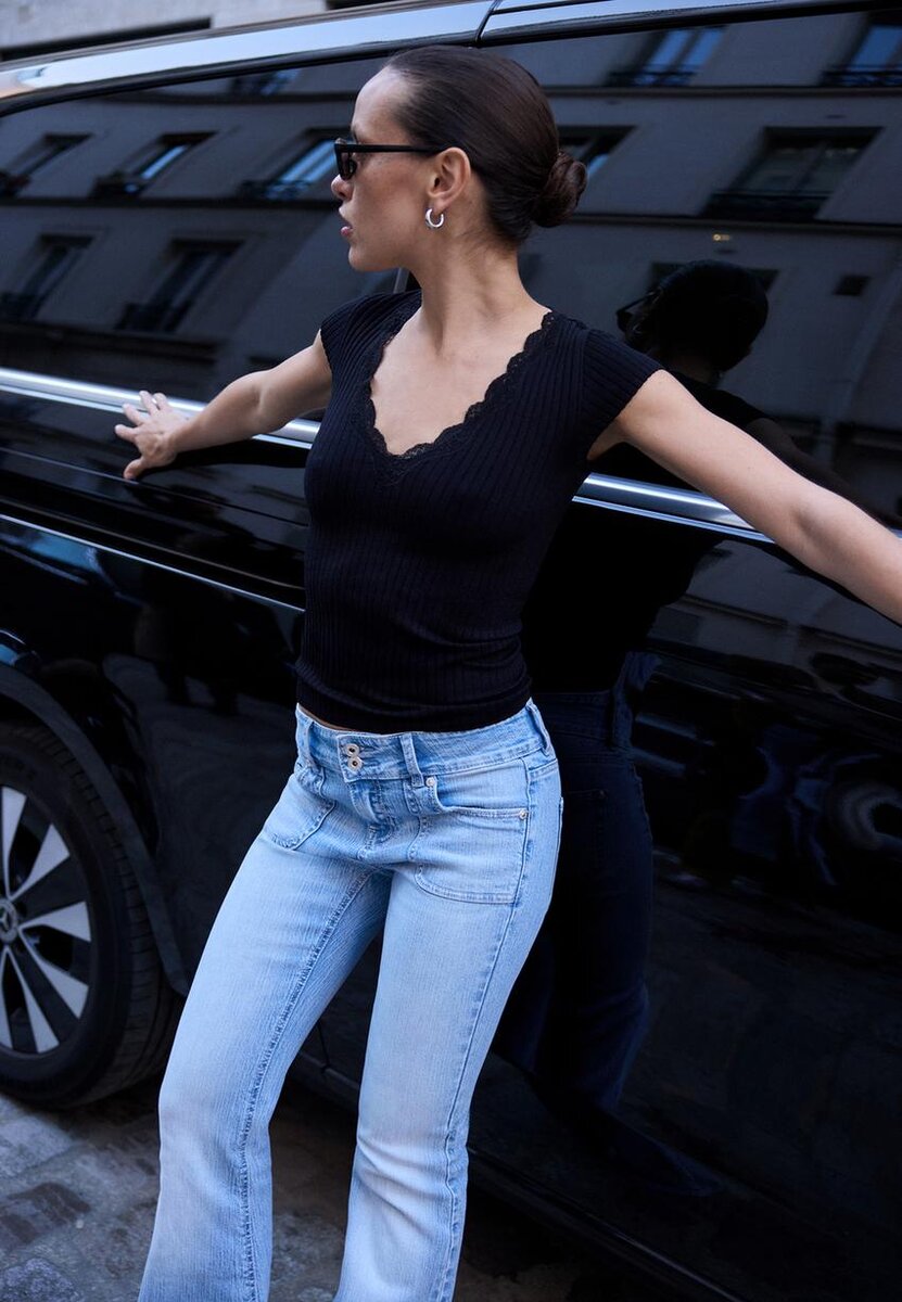 V-hals T-skjorte med blonder og korte ermer hos Stradivarius for kun 25,9 $ Tilgjengelig i en begrenset periode. Mocacos Nuevo for kvinner Alltid på moten, kom inn og oppdag det nå!