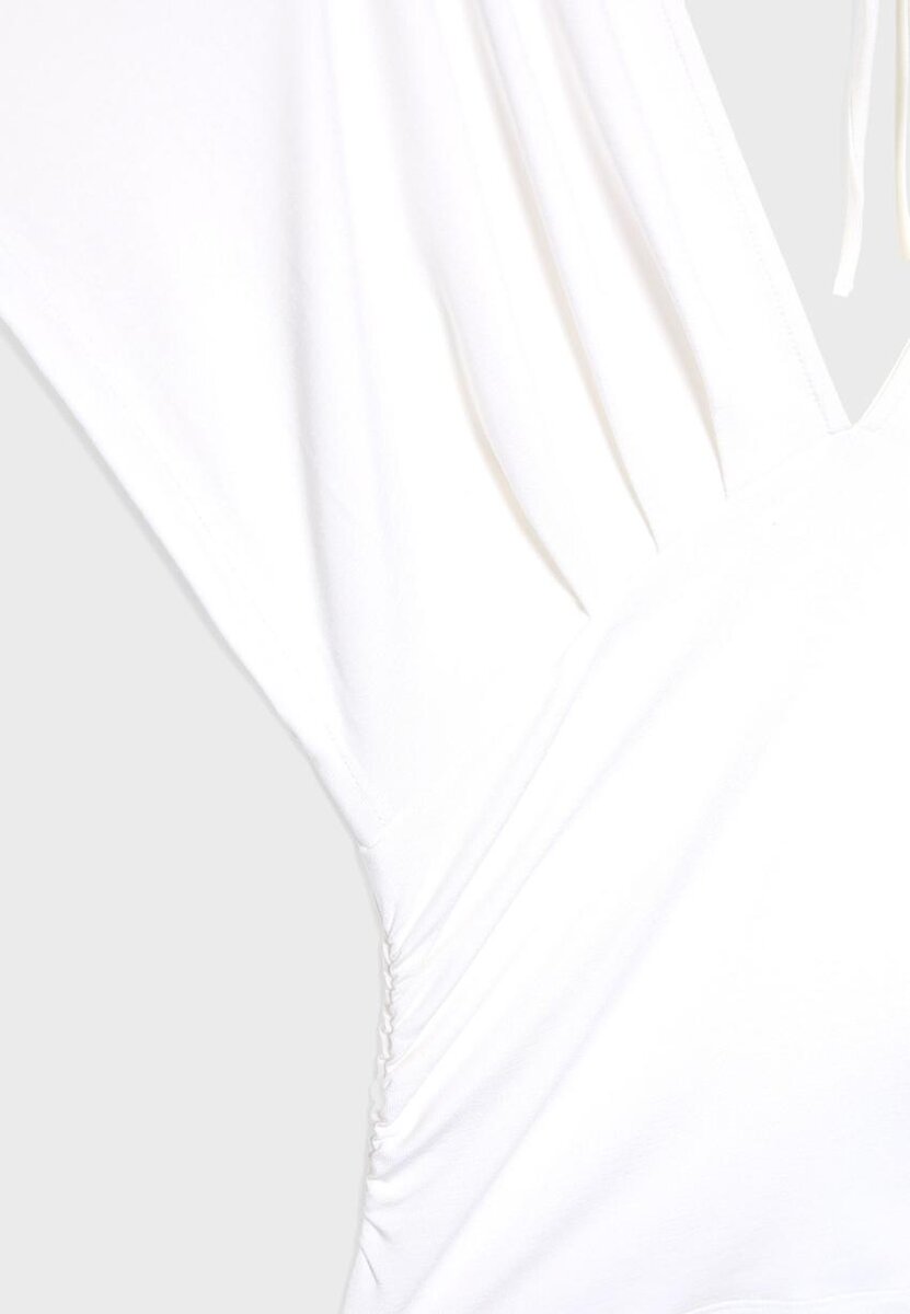 V-hals-top med korte ermer. Bånd i ryggen i samme stoff. Tettsittende kant. Tilgjengelig i flere farger.