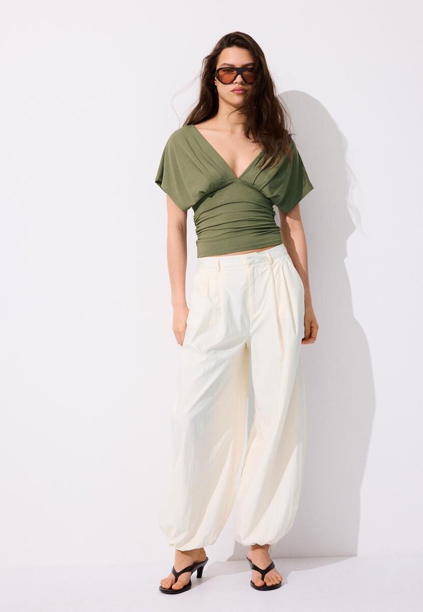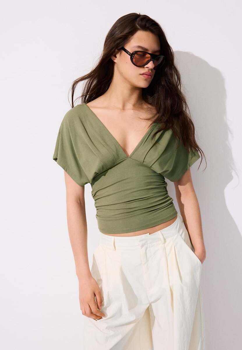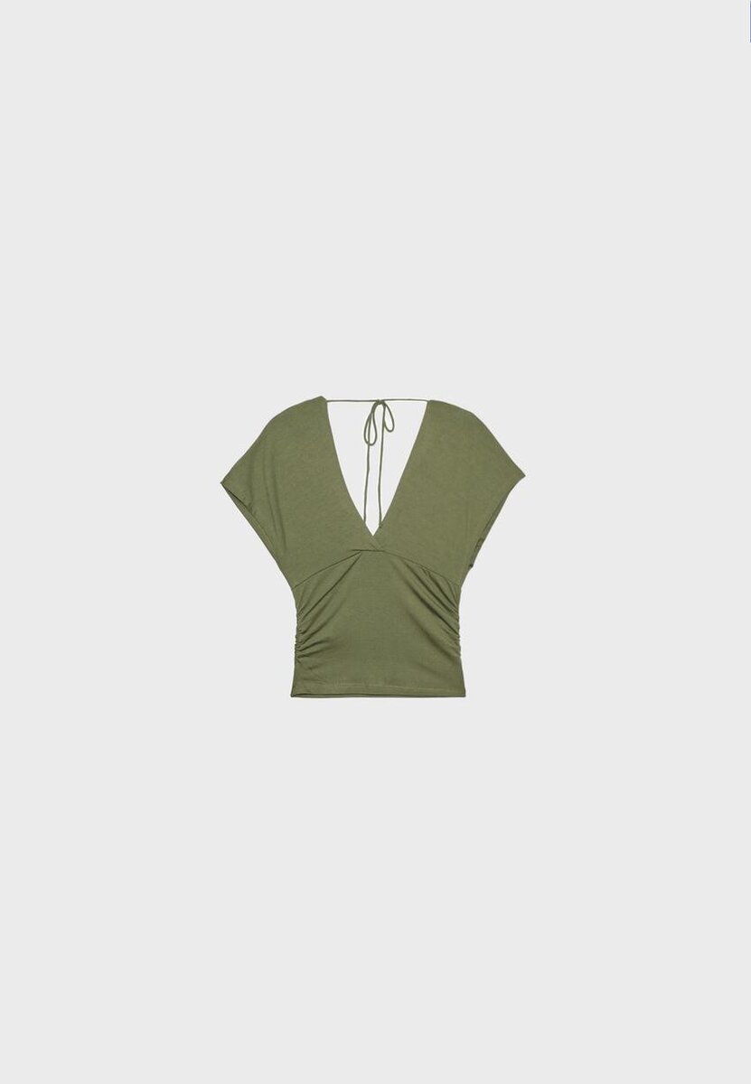 V-hals-top med bånd i Stradivarius for kun 25,9 $ Tilgjengelig i en begrenset periode. Null for kvinner Alltid på moten, kom inn og sjekk ut nå!