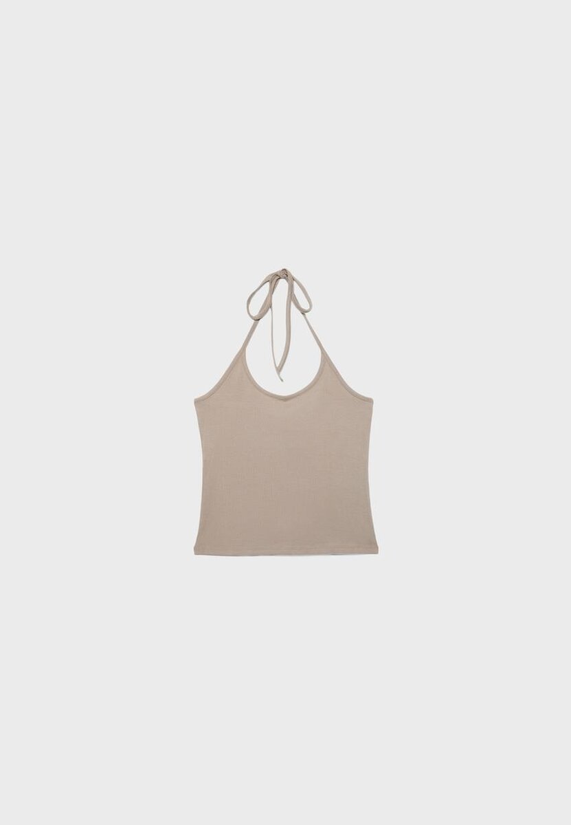 Tettsittende halterneck-top. Har tynne, justerbare bånd og åpen rygg.