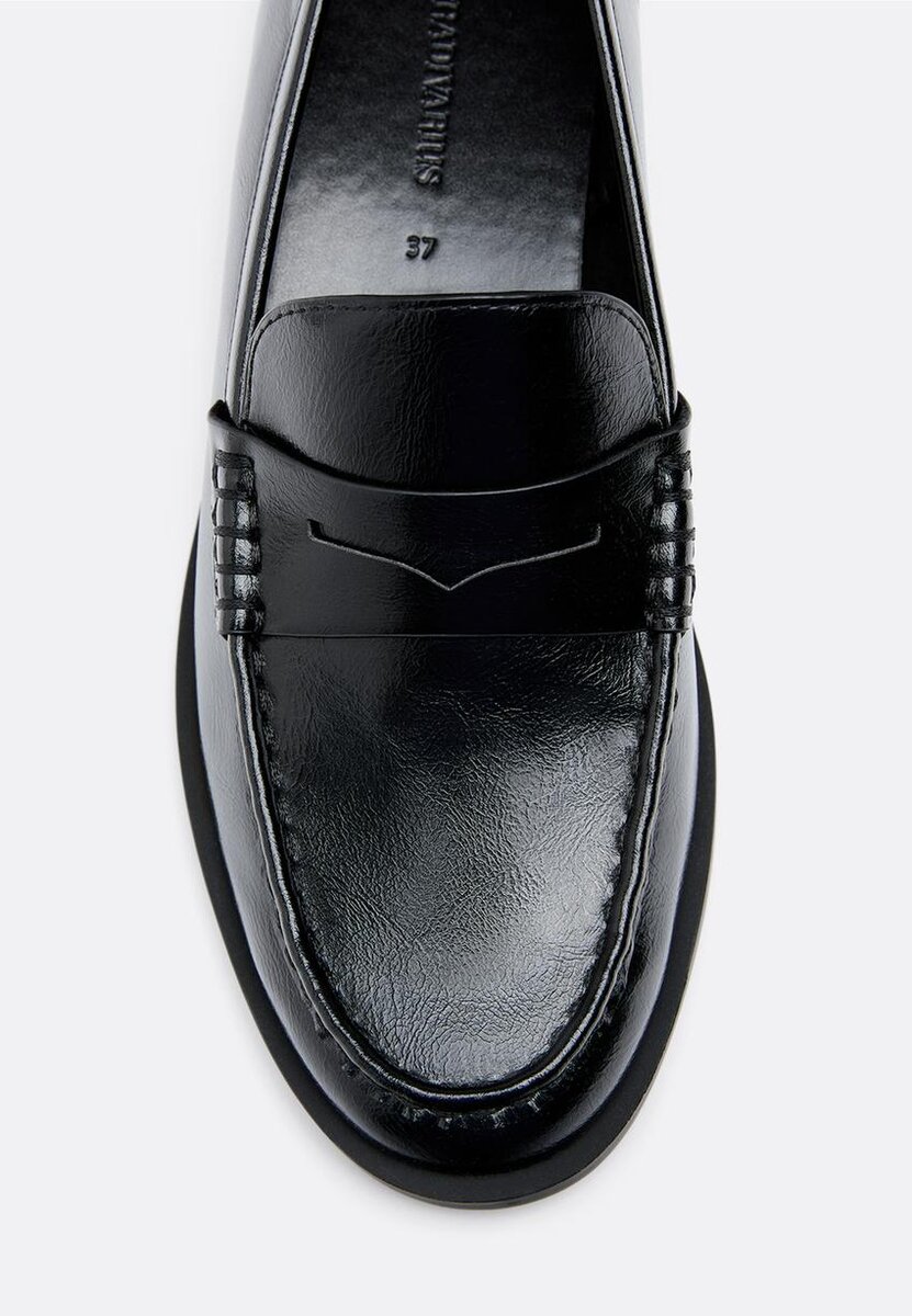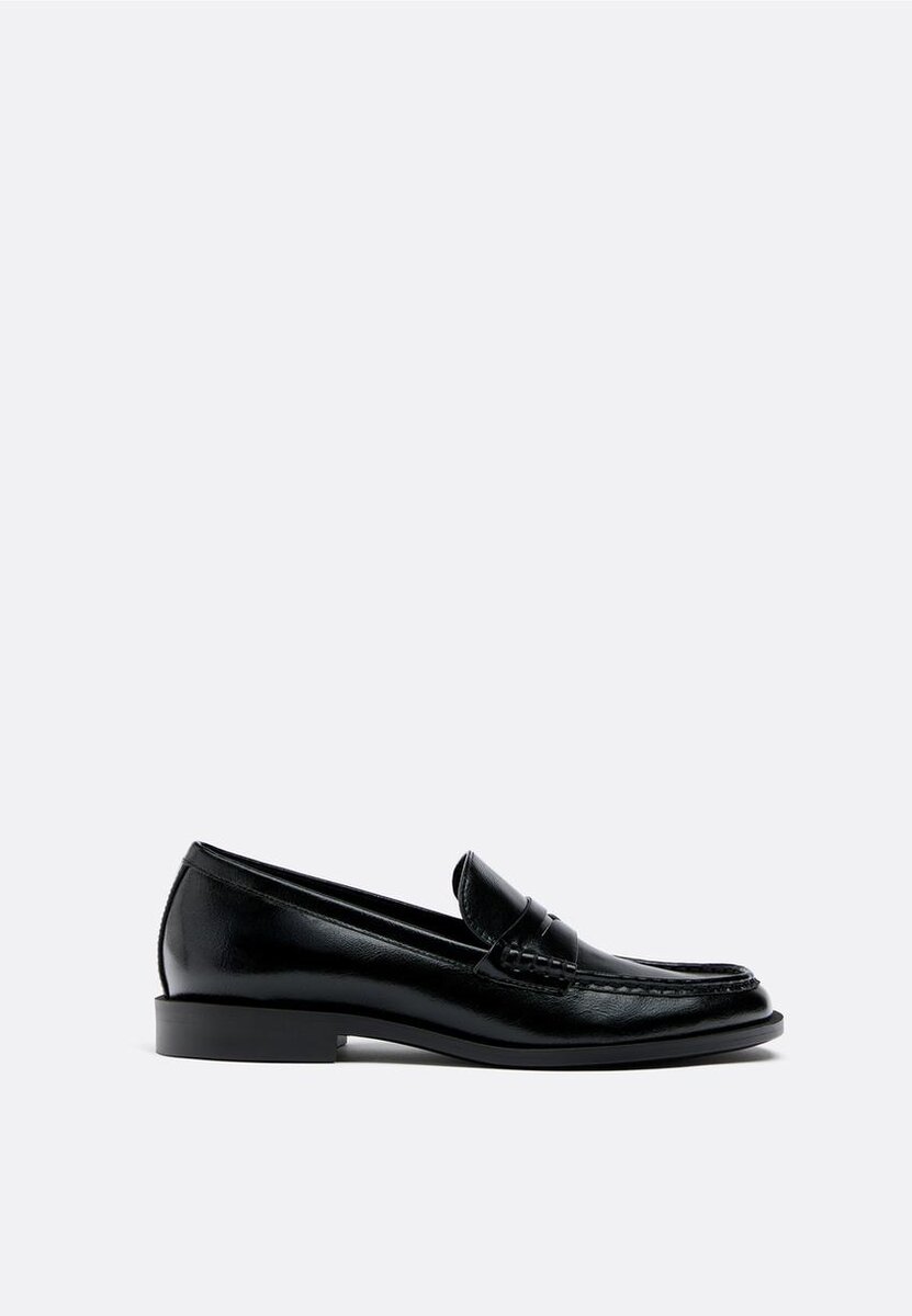 Svarte loafers i skinnlook hos Stradivarius for kun 59,9 $ Tilgjengelig i en begrenset periode. Null for kvinner Alltid på moten, kom inn og sjekk nå!