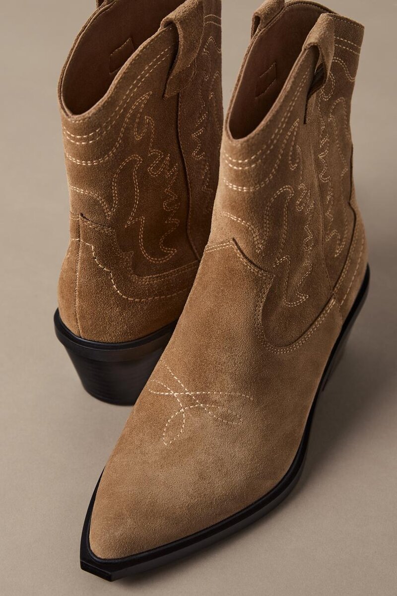 Ankelstøvler i splittet skinn i cowboy-stil