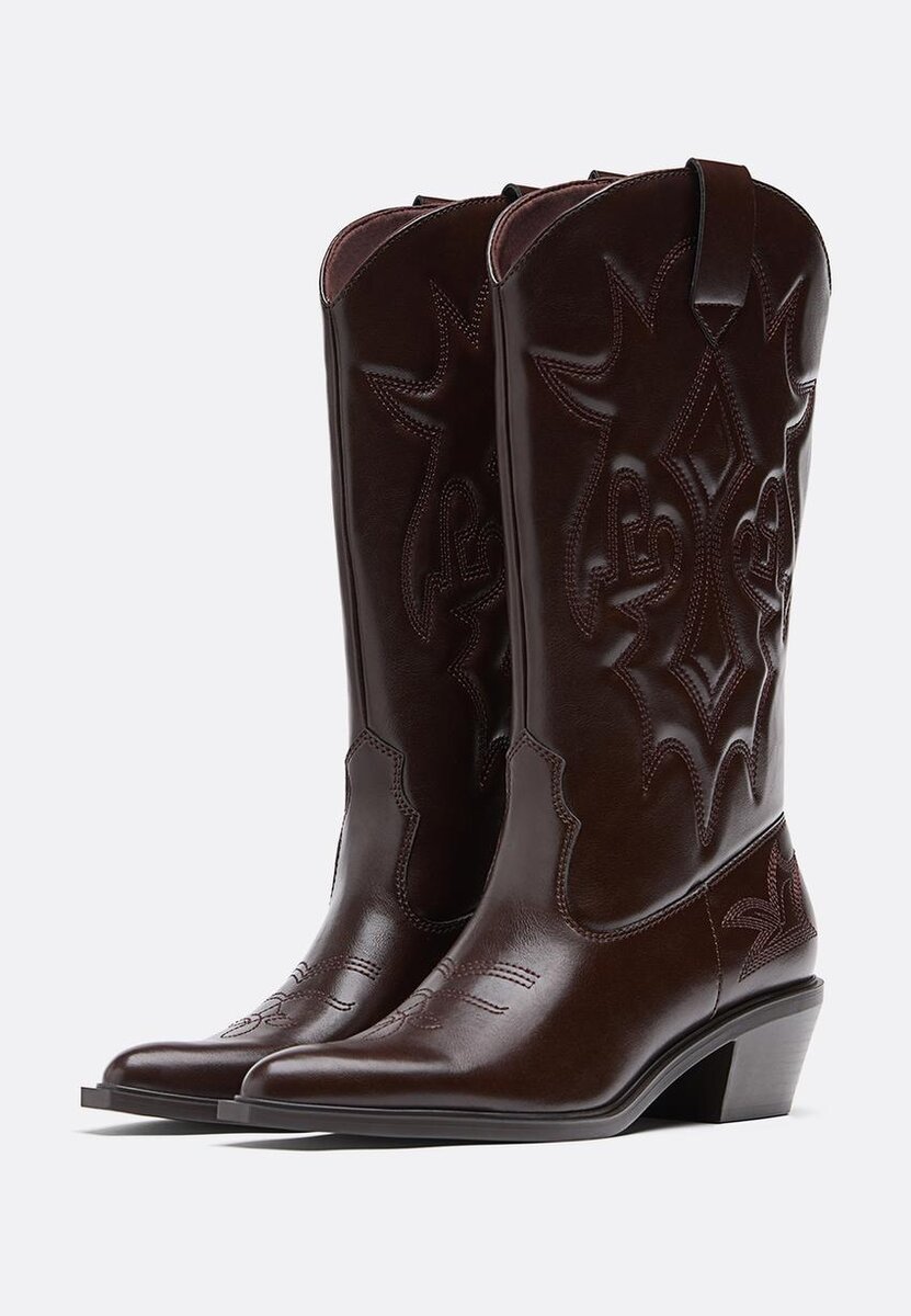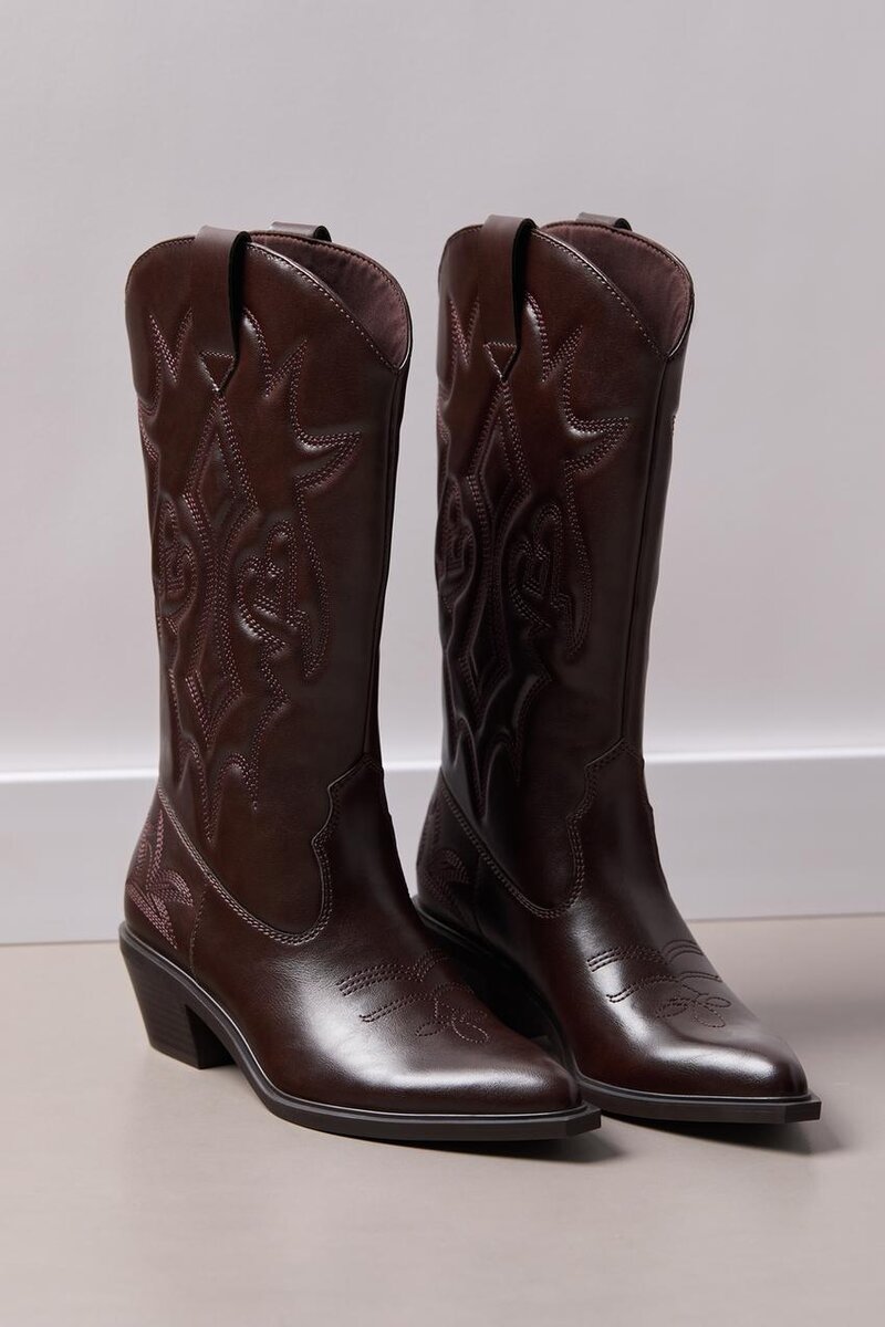 Cowboystøvler for kvinner tilgjengelig i forskjellige farger. Broderte detaljer på støvelens legg. Trekkfliker på sidene av støvlene. Hælhøyde: 4,5 cm. Airfit ®. Fleksibel innersåle i teknisk latexskum, designet for å gi større komfort.