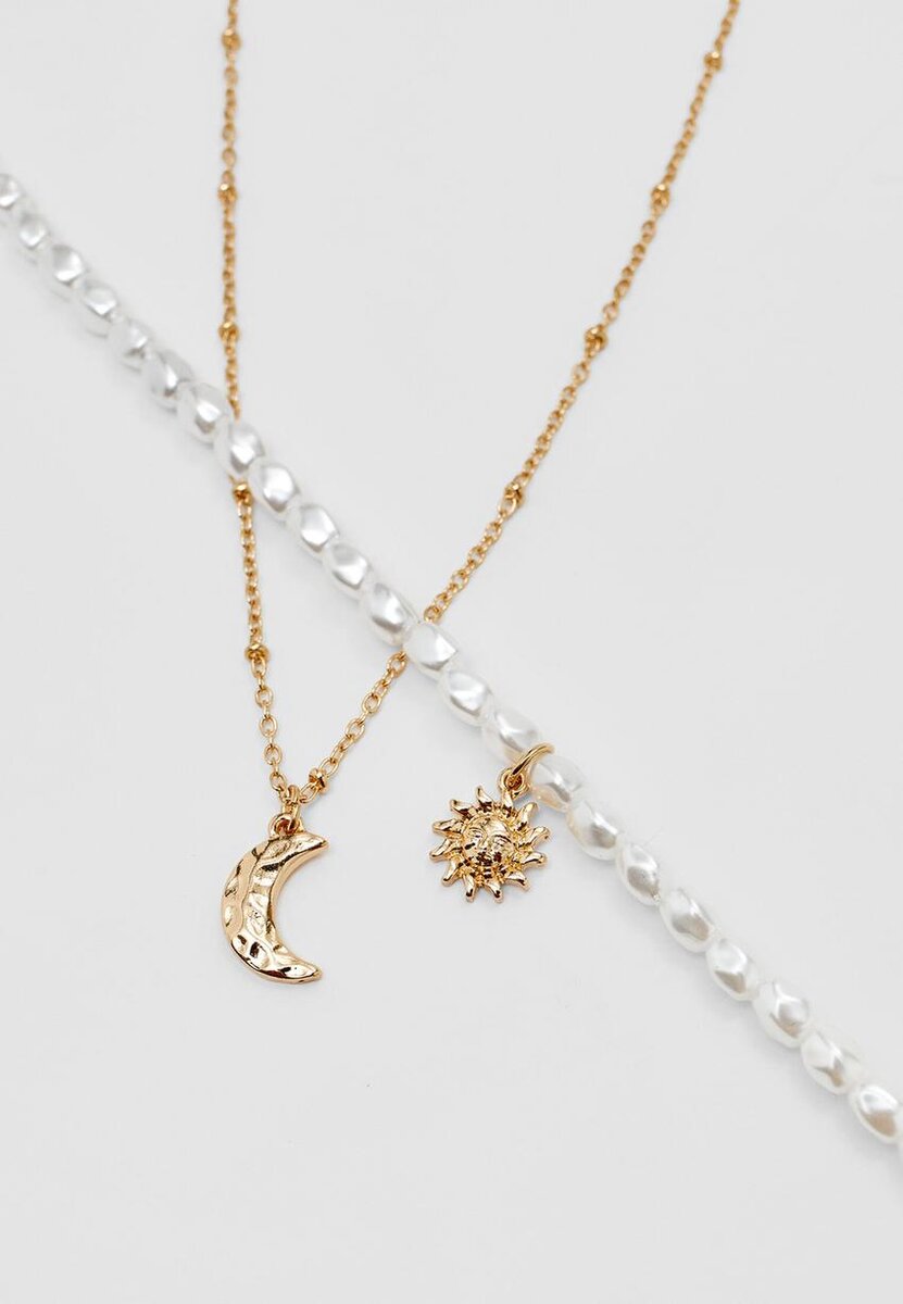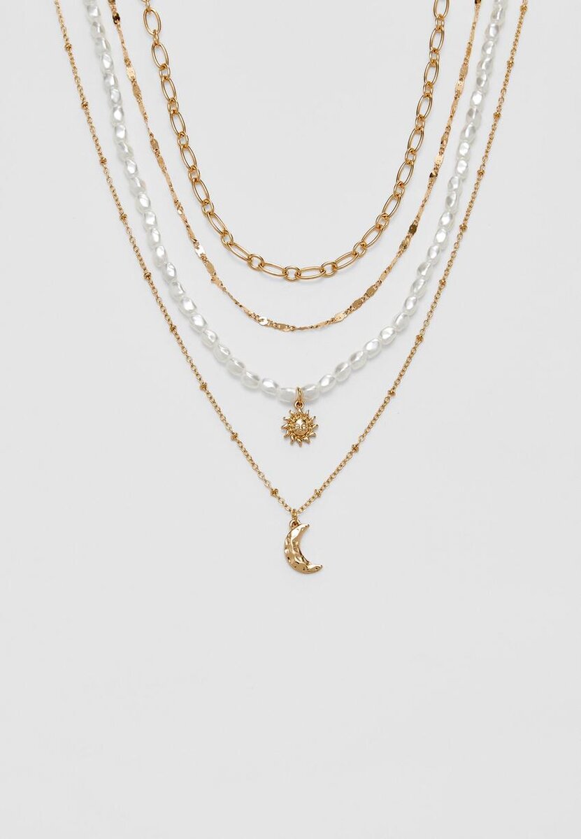 Sett med 4 måne- og solhalskjeder hos Stradivarius for bare 14,9 $ Tilgjengelig i en begrenset periode. Null for kvinner Alltid på moten, kom inn og sjekk det ut nå!