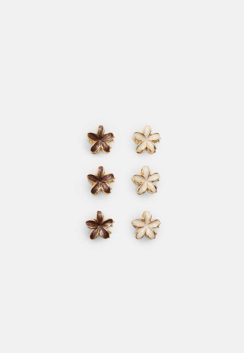 Sett med 6 mini blomsterhårspenner i Stradivarius for bare 14,9 $ Tilgjengelig i en begrenset periode. Null for kvinner Alltid på moten, kom inn og sjekk det ut nå!