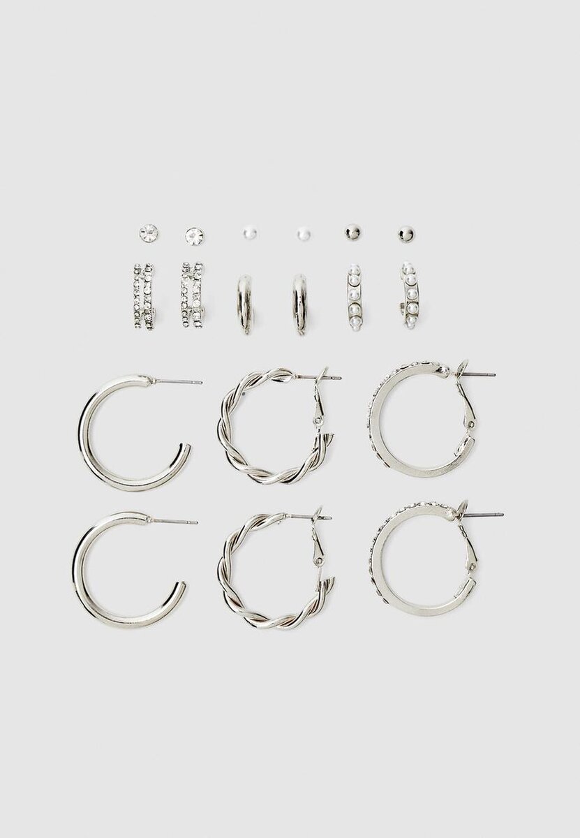 Sett med 9 hoop-øreringer med rhinestones og perler hos Stradivarius for bare 14,9 $ Tilgjengelig i en begrenset periode. Null for kvinner Alltid på moten, kom inn og sjekk det ut nå!