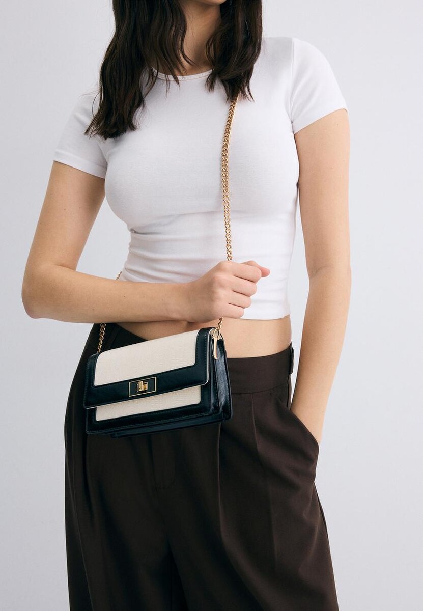 Kontrastfarget crossbody-veske i kanvas fra Stradivarius for kun 29,9 $ Tilgjengelig i begrenset periode. Mocacos Nuevo for kvinner Alltid på moten, kom inn og sjekk ut nå!